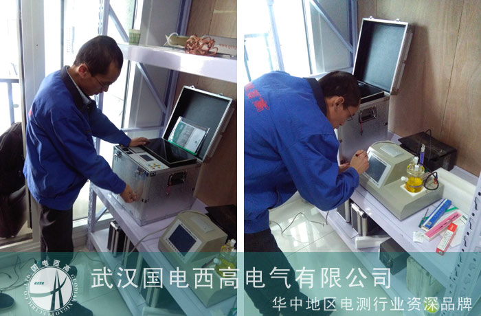 本次調試主要是以客戶的變壓器油作為被試品,首先是對GDOT-80按照國際模式進行實驗。試驗過程中詳細講解了操作注意事項。在GDW-106的試驗過程中,首先要對電解池及電極部分組裝,然后用50ul注射器慢慢注入純水直到電解池油深褐色變為淺黃。然后是電解液達到平衡點,再用1000ul注射器注入1ml的變壓器油樣后開始測定。該操作過程需要耐心和仔細,因此在試驗過程中,技術人員詳細操作,并指導客戶進行試驗。