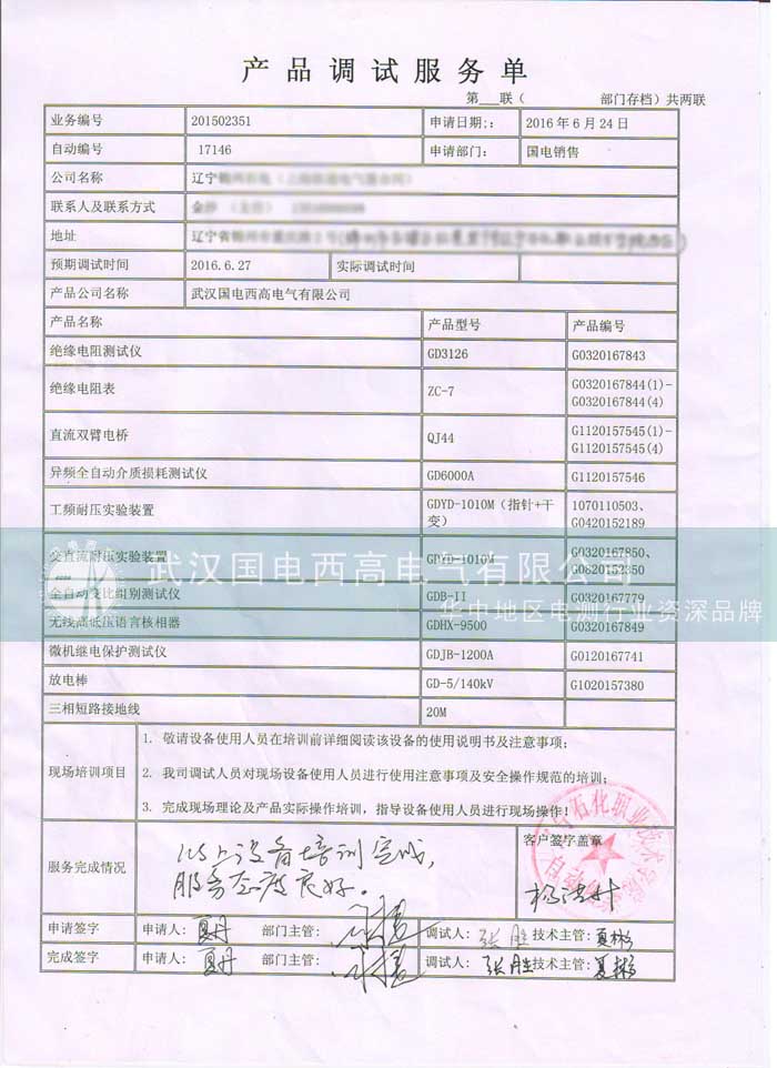 此次前往遼寧,客戶申請調試的設備多達數十款,主要設備包括GD3126絕緣電阻測試儀、GD6000A異頻全自動介質損耗測試儀、GDYD-1010M工頻耐壓試驗裝置、交直流耐壓試驗裝置、GDB-II全自動變比組別測試儀、GDHX-9500無線高低壓語言核相器、GDJB-1200A微機繼電保護測試儀……