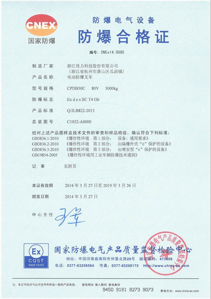 CPDB50C 電動防爆叉車 IIC氣體證書