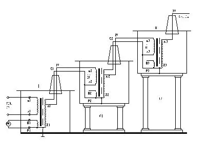 三臺試驗變壓器串級使用,例如上述型號分別是10kVA/50kV、5kVA/50kV、3kVA/50kV,那么三臺容量之比就是3:2:1,總?cè)萘客瑯右彩堑谝患壴囼炞儔浩魅萘?0kVA,而總電壓就是三臺試驗變壓器的電壓之和,也就是說總電壓輸出為150kV。