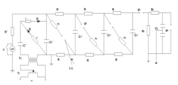 沖擊電壓發(fā)生器接線原理圖如下圖: