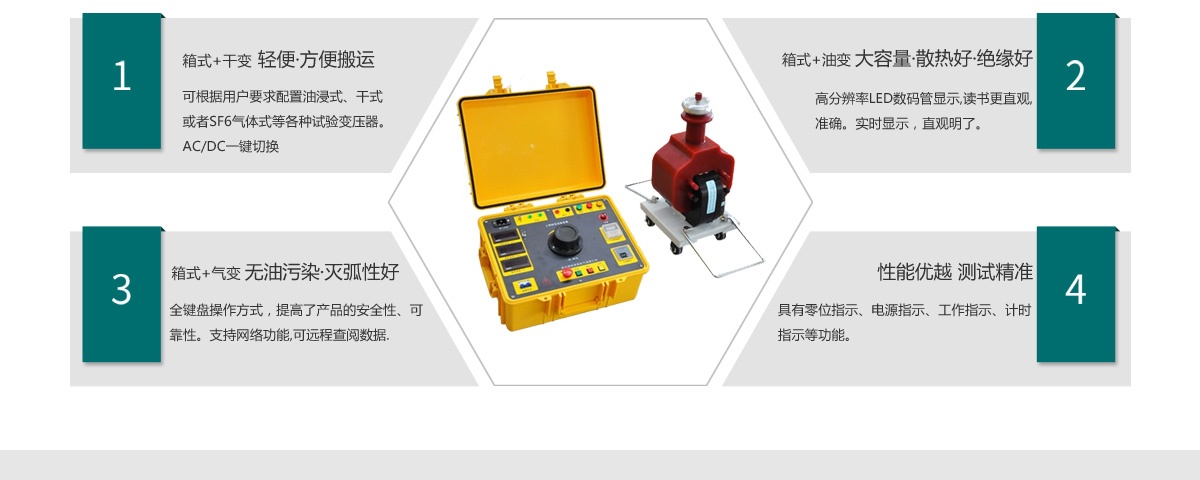 • 可根據用戶要求配置油浸式、干式或者SF6氣體式等各種試驗變壓器。