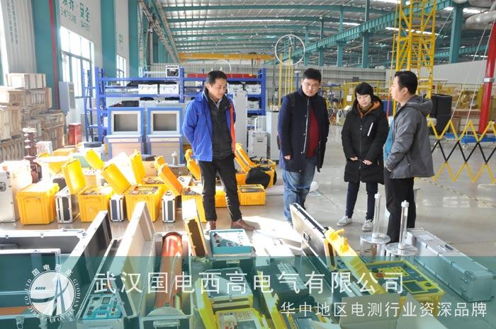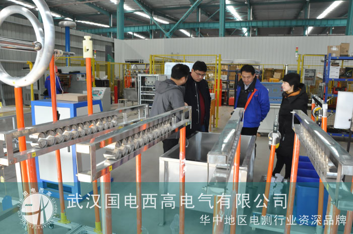 客戶抵達武漢后,便立即前往我司生產工廠進行參觀考察。先是在我司技術人員的陪同下,對我司的生產經營范圍以及生產實力有了詳細的了解。隨即重點考察其需要購買的電力安全工器具的試驗設備。