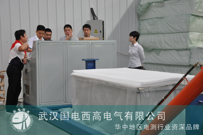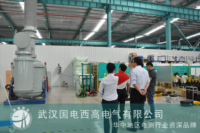 在參觀過程中,客戶對我司即將出口的新加坡的GIT(SF6移動式工頻耐壓局放試驗裝置)表現出濃厚的興趣。
