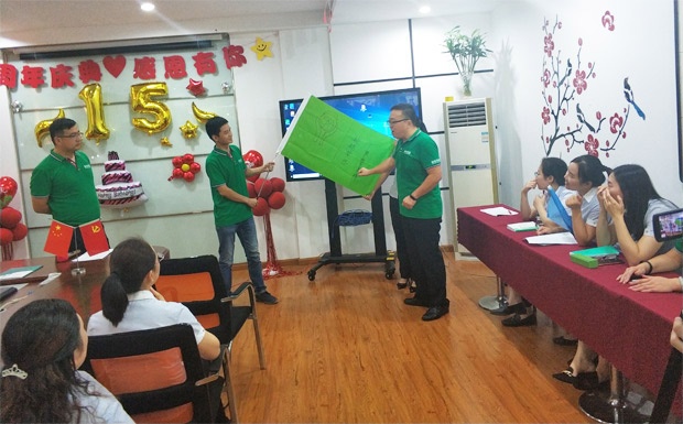 2019年9月29日,大家歡聚在一起共同慶祝公司成立15周年。此次周年慶活動分為“歌唱祖國”和“回首往事”兩個環節進行。“歌唱祖國”比賽主要考驗大家的創新能力和組織能力,更重要的是在活動過程中加強團隊建設,培養團隊默契。