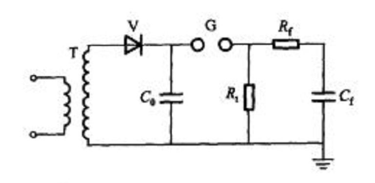沖擊電壓發生器原理電路圖: