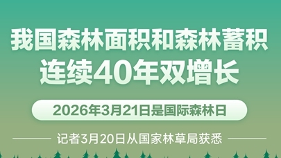 3月21日是國際森林日。記者3月20日從國家林草局獲悉,目前我國森林面積達36.14億畝,全國森林覆蓋率達25.09%,森林蓄積量達209.88億立方米,森林面積和森林蓄積連續40年實現雙增長,成為全球增綠最多最快的國家。